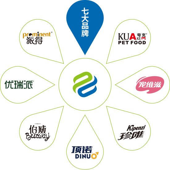派得系列产品现有“派得”、“夸克”、“优瑞派”、“宠维滋”、“伯威”“珍唯”“顶诺”七大自主品牌十五个系列单品。